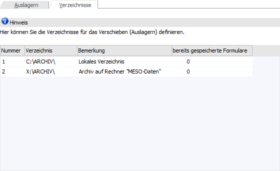 In dieser Spalte wird die Anzahl der Formulare angezeigt, die bereits in diesem Verzeichnis ausgelagert bzw. gespeichert wurden.