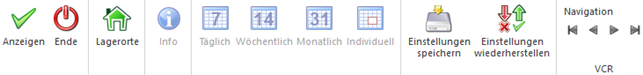 Über die so genannten VCR-Buttons, welche in jedem Register zur Verfügung stehen, kann durch Mausklick zwischen den Datensätzen geblättert werden.