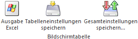 Im Gegensatz zu "Tabelleneinstellungen speichern" können mit "Gesamteinstellungen speichern" mehrere Tabellenaufbauten gespeichert und nach Wunsch geladen werden. Zusätzlich werden Sonderfunktionen der Tabelle (z.B. "Spalte gruppieren") ebenfalls bei der Speicherung bedacht.