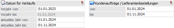 Eingabe eines Zeitraumes für welchen Kundenaufträge bzw. Lieferantebestellungen berücksichtigt werden sollen.