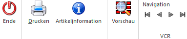 Über die sogenannten VCR-Buttons, welche in jedem Register zur Verfügung stehen, kann durch Mausklick zwischen den Datensätzen geblättert werden.