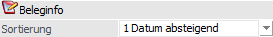 An dieser Stelle kann definiert werden, ob die Beleginfo (Register "Beleginfo") nach "0 - Laufnummer" oder "1 - Datum absteigend" ausgegeben werden soll.