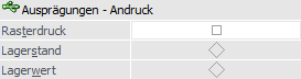 Wenn der Rasterdruck aktiviert wurde, dann werden die folgenden Einstellungen "inaktive andrucken", "Ausprägungssummen" und "Lagerstandsoptionen" nicht berücksichtigt.
