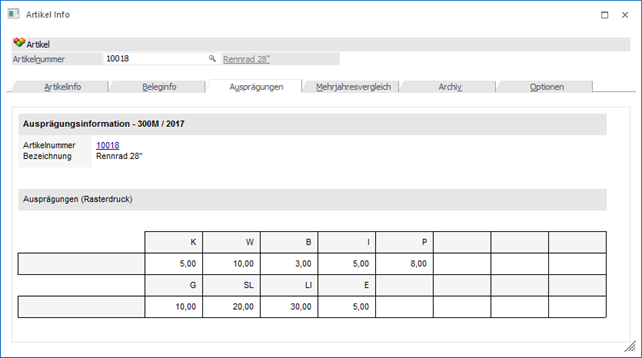 Beispiel - Artikel mit einer Ausprägung - Rasterdruck nach Lagerstand