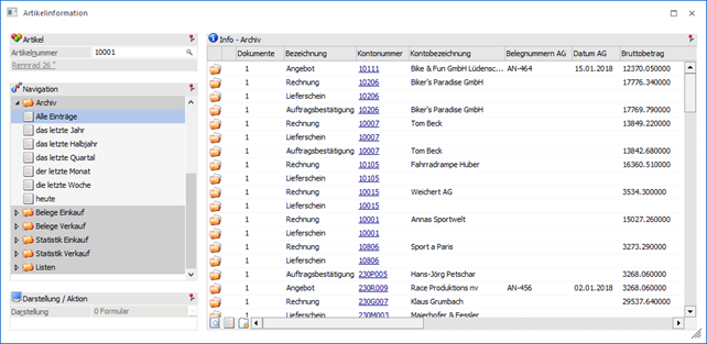 In der Tabelle werden alle Archiveinträge des Artikels aufgeführt. Die Anzeige eines Archivdokuments kann über 2 Wege erfolgt:
