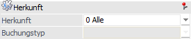 Sobald unter Herkunft eine Auswahl ungleich "0 - Alle" getroffen wurde, kann hier über eine Mehrfachauswahl der Typ der Buchung selektiert werden. Die zur Verfügung stehenden Varianten sind dabei abhängig von der gewählten Herkunft: