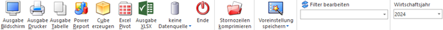 Über die Auswahlbox kann das Wirtschaftsjahr gewählt werden, für welches die Auswertung erfolgen soll. Damit können die Daten aus den Vorjahren angezeigt werden, ohne dass das Fenster geschlossen und ein manueller Wirtschaftsjahreswechsel vorgenommen werden muss.