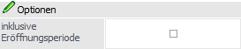 Bei den Zeiträumen "Quartal" und "Halbjahr" steht die Option "inklusive Eröffnungsperiode" zur Verfügung. Mit Hilfe dieser Einstellung kann definiert werden, ob die Buchungen der Periode "0" (Zeilen der Lagerstandsübernahme) ebenfalls angezeigt werden sollen.