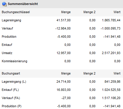 Handelt es sich um Eröffnungsbuchungen von Hauptartikel mit Ausprägungen, so werden die Hauptartikelbuchungen in der Summenübersicht generell nicht berücksichtigt!