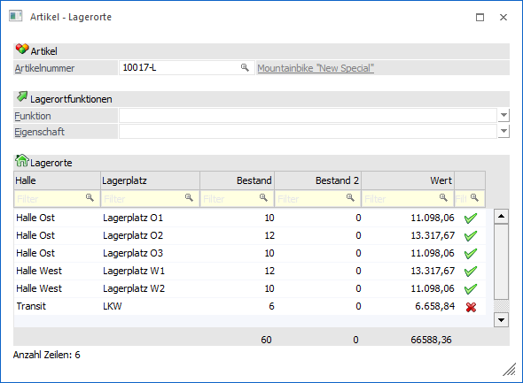 An dieser Stelle wird der Bestand des Lagerorts für den selektierten Artikel angezeigt.