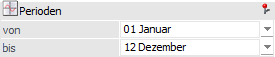 Aus den Auswahllistboxen können die Perioden ausgewählt werden, die ausgewertet werden sollen. Für die Auswertung werden die Werte der einzelnen Perioden zusammengefasst.