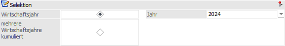 Ist die Option "Wirtschaftsjahr" ausgewählt, kann aus der nebenstehenden Auswahlliste das Jahr ausgewählt werden, welches ausgewertet werden soll. Dabei stehen jene Wirtschaftsjahre zur Verfügung, die im sich im aktuellen Mandanten befinden (zusammengeführt wurden).