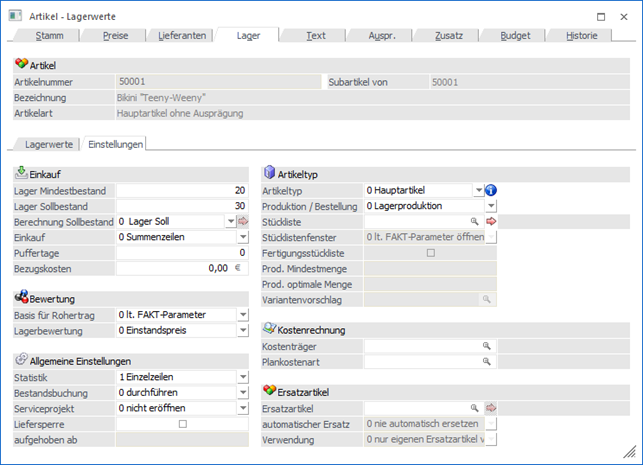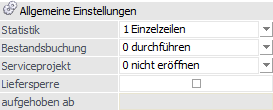 Hier kann eingestellt werden, ob beim Rechnen einer Faktura oder im Zuge der Lagerneubewertung eine Bestandsbuchung für den Artikel