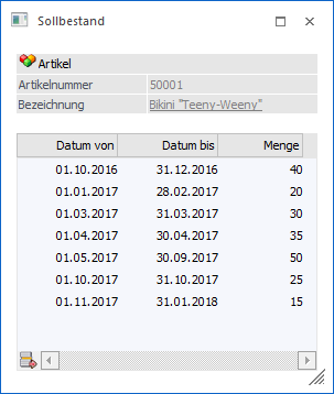 Eingabefeld), in welchem die Sollbestände mit Datumseingrenzung eingegeben