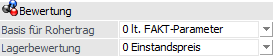 An dieser Stelle kann hinterlegt werden, aufgrund welcher Basis die Lagerbewertung erfolgen soll. Dies hat nur Auswirkung auf die Darstellung der Artikellisten. Folgende Möglichkeiten stehen zur Verfügung: