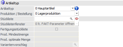 Handelt es sich bei dem Artikel um eine Komponente einer Handelsstückliste bzw. einer Produktionsstückliste, so wird diese Einstellung ignoriert! Der Artikel wird dann wie bei "0 - Lagerproduktion" bzw. bei Aktivierung der Reservierung in den FAKT-Parametern wie bei "2 - Bestellung mit Reservierung" behandelt.