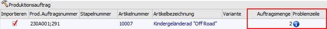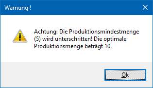 Unterschreitung beim Einlesen eines Produktionsauftrages