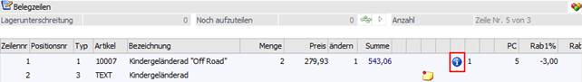 Fakturenzeile, die für den Artikel erstellt wurde, wird vollständig in die
