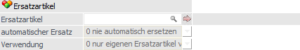 Im Feld "Ersatzartikel" wird der Ersatzartikel eingegeben, der immer als erstes vorgeschlagen wird und somit die Priorität 0 hat.