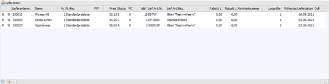 In dieser Spalte erfolgt die Zuweisung zur Preisliste, welche das Bindeglied zwischen Lieferanten und Artikel darstellt.
