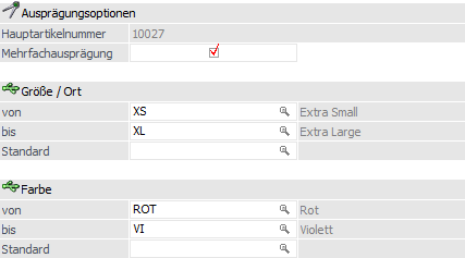 Bei "Hauptartikeln mit Ausprägungen" werden an dieser Stelle die definierten Ausprägungsbereiche angezeigt.