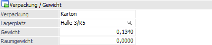 Wenn sich das Modul INTRASTAT im Einsatz befindet, so muss hier das Gewicht in kg/Stück hinterlegt werden.