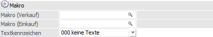 Soll ein Makro (z.B. ein Textbaustein) für den Bereich "Verkauf" (Angebot, Auftrag, Lieferschein, Faktura) mit dem Artikel verknüpft werden, so wird hier der Makronamen eingetragen.