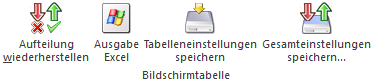 Im Gegensatz zu "Tabelleneinstellungen speichern" können mit "Gesamteinstellungen speichern" mehrere Tabellenaufbauten gespeichert und nach Wunsch geladen werden. Zusätzlich werden Sonderfunktionen der Tabelle (z.B. "Spalte gruppieren") ebenfalls bei der Speicherung bedacht.