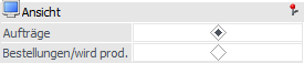 Entsprechenden der Auswahl im Bereich "Ansicht" kann an dieser Stelle angegeben werden, welcher Arten von Aufträgen oder Bestellungen in der oberen Tabelle berücksichtigt werden sollen.