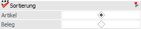 An dieser Stelle kann definiert werden, ob die Sortierung innerhalb der oberen Tabelle nach Artikeln oder nach Belegen erfolgen soll.
