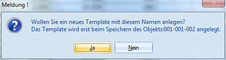 angezeigt. Wird diese mit JA bestätigt, wird ein neues Kalkulationsschema mit dem eingetragenen Namen gespeichert. Wird die Meldung mit NEIN bestätigt, gelangt man wieder in die Auswahllistbox zurück.