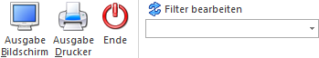 Mit Hilfe des Buttons "Ausgabe Bildschirm" oder der Taste F5 wird die Auswertung am Bildschirm ausgegeben.