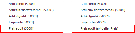 Durch Anwahl dieses Eintrages wird die Auswertung des Preisaudits gestartet und automatisch auf den "aktuellen" Artikel eingegrenzt.