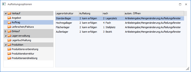 In dieser Spalte kann pro Lagerortstruktur bestimmt werden, ob die Aufteilung: