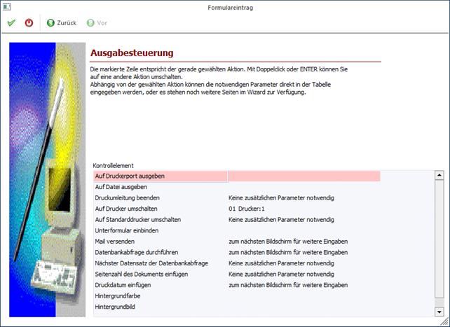 Mit dieser Funktion kann das aktuelle Datum und die aktuelle Uhrzeit an jedem beliebigen Formular angedruckt werden. Bei dieser Option kann durch Anklicken des VOR-Buttons die Einstellungen vorgenommen werden, wie das Datum angedruckt werden soll.