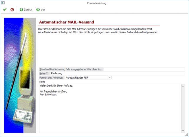 Durch Anklicken des OK-Buttons wird der Eintrag in das Formular übernommen. Durch Drücken der ESC-Taste wird das Fenster geschlossen. Durch Anklicken des Zurück-Buttons können die Mail-Einstellungen bearbeitet werden.