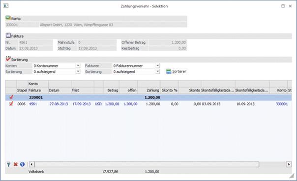 Alle anderen Funktionen entsprechen der Beschreibung des "normalen" Zahlungsverkehrs (siehe Kapitel Zahlungsverkehr)