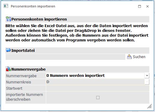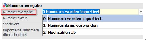 ü 2=Hochzählen ab: die in der Importdatei enthaltenen Stammdaten werden anhand des hinterlegten Startwertes hochgezählt. Es ist möglich "importierte Nummern überschreiben" zu wählen.