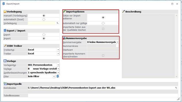 ü 0=Nummern werden importiert: die Nummern aus der Importdatei werden als Key verwendet (es sind keine weiteren Eingaben notwendig).
