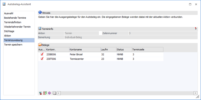 In der Terminzuweisung erfolgt die Zuweisung der Belege zu einem bestimmten Termin. Aufgrund dieser Termine und deren Zuweisung kann später u.a. die Ausgabe der Telefonliste erfolgen (siehe Kapitel Telefonverkauf).