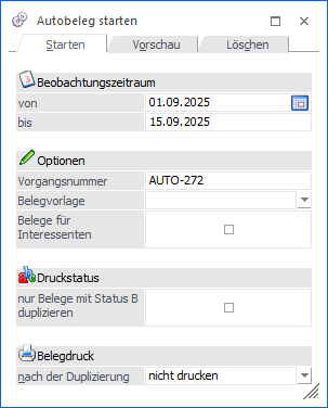 … können zuvor definierte Autobelege-Termine (auch "Aktionsplan" genannt) durchgeführt bzw. gelöscht werden.