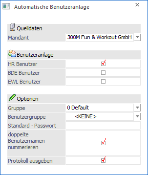 An dieser Stelle kann per Option definiert werden, was für WinLine Benutzer erzeugt werden sollen: