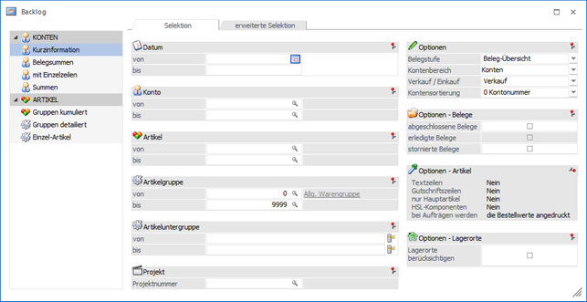 ü Register "erweiterte Selektion"
