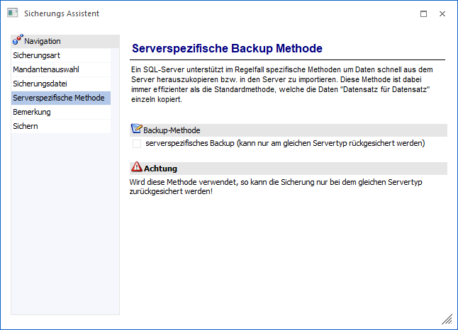 Serverspezifische Backup-Methode" die richtige Variante.