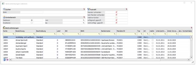 die Bankverbindung aller Debitoren und Kreditoren bearbeitet und ergänzt werden.