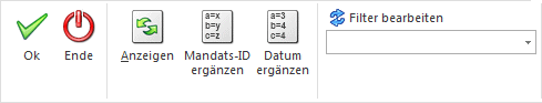 Über den Button "Mandats-ID ergänzen" kann für alle Bankverbindungen, die keine Mandats-ID hinterlegt haben, eine automatische vom Programm erzeugte Mandats-ID vergeben werden.