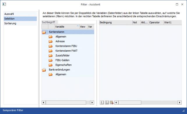 Zusätzlich zu den Selektionskriterien kann auch über den Filter die Auswahl der angezeigten Bankverbindungen noch eingeschränkt werden.