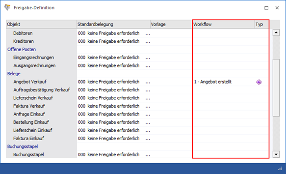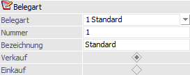Durch Anwahl der Einstellung "Verkauf" oder "Einkauf" wird festgelegt, ob es sich um eine Einkaufs- bzw. Verkaufsbelegart handelt.