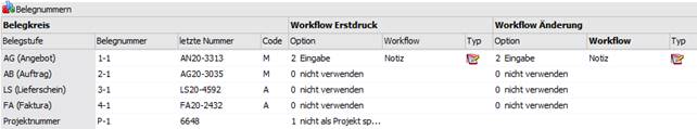 Beim Upsizen auf die Version 12 wird für jede Belegart und jede Belegstufe plus Projektnummer ein Nummernkreis angelegt. Im Menüpunkt "Nummernkreise" können Beleg-Nummernkreise angelegt und editiert werden.