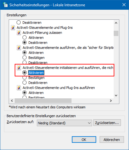 "Active-X-Steuerelemente initialisieren und ausführen, die nicht sicher sind..."